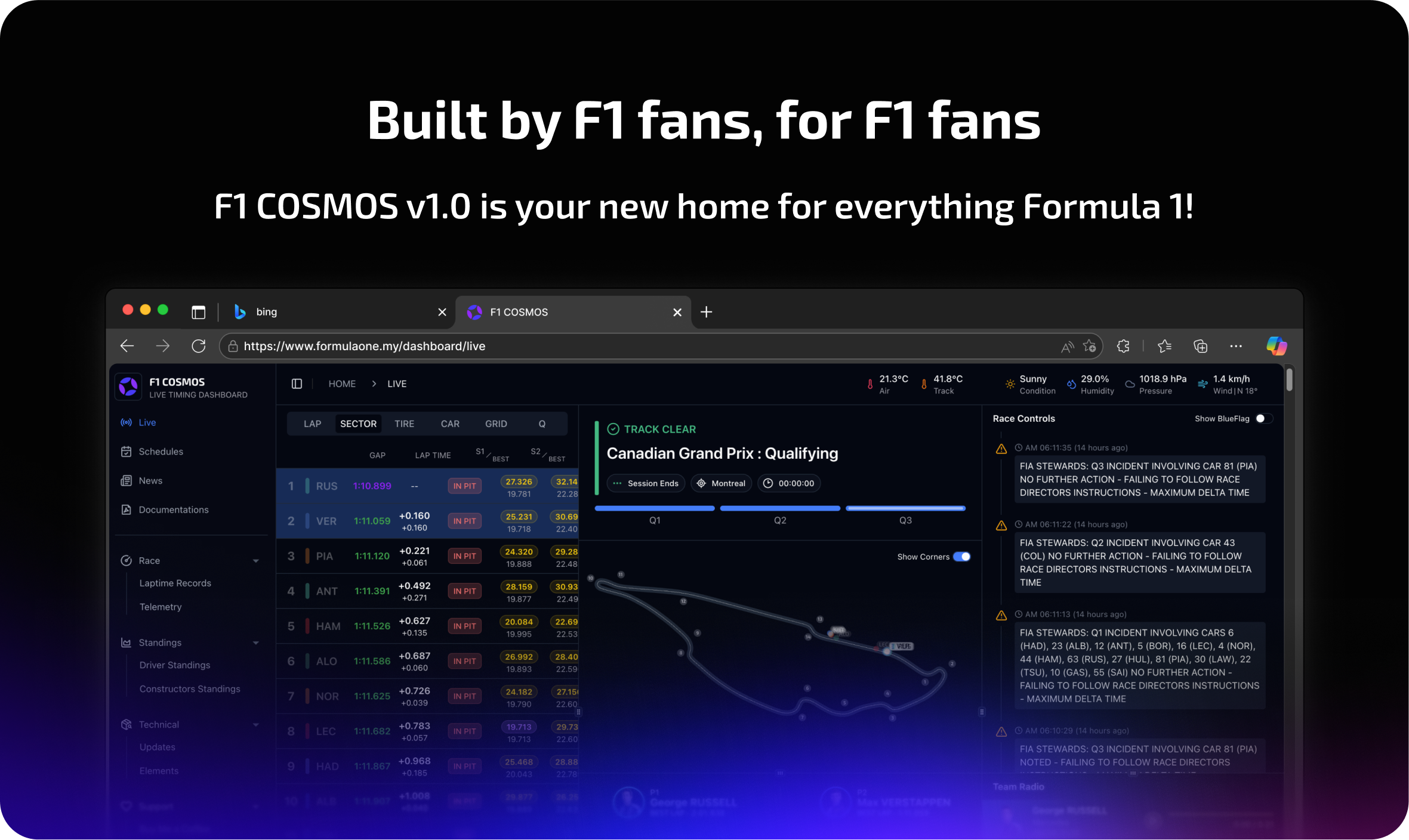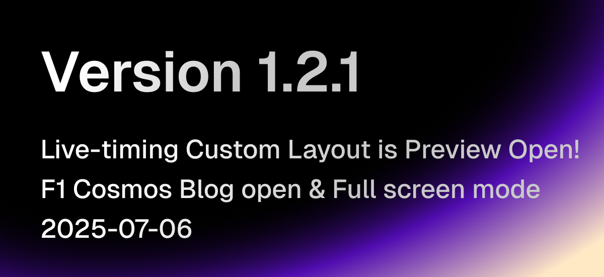 F1 COSMOS v1.0 aims to provide all the information Formula 1 fans need in one place. From real-time data to detailed analysis, don't miss any moment of F1 action!